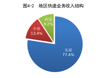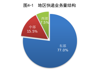 1-8月,東、中、西部地區(qū)快遞業(yè)務量比重分別為77.0%、15.5%和7.5%,業(yè)務收入比重分別為77.4%、13.4%和9.2%。與去年同期相比,東部地區(qū)快遞業(yè)務量比重下降1.5個百分點,快遞業(yè)務收入比重下降1.0個百分點;中部地區(qū)快遞業(yè)務量比重上升1.3個百分點,快遞業(yè)務收入比重上升0.7個百分點;西部地區(qū)快遞業(yè)務量比重上升0.2個百分點,快遞業(yè)務收入比重上升0.3個百分點。