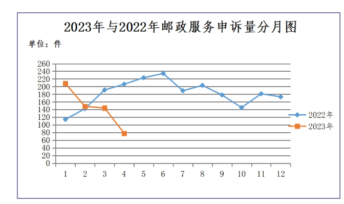 2023年4月消費(fèi)者對(duì)郵政服務(wù)問題有效申訴情況統(tǒng)計(jì)表