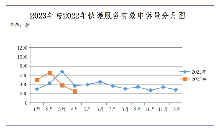 2023年4月消費(fèi)者對(duì)快遞服務(wù)問題有效申訴情況統(tǒng)計(jì)表