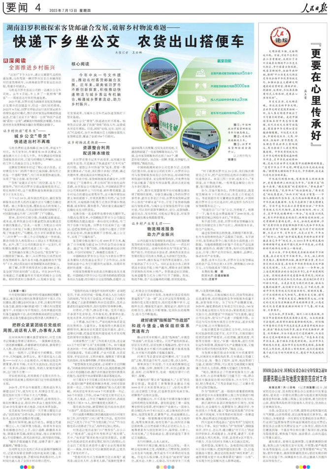 人民日報:快遞下鄉(xiāng)坐公交 農(nóng)貨出山搭便車