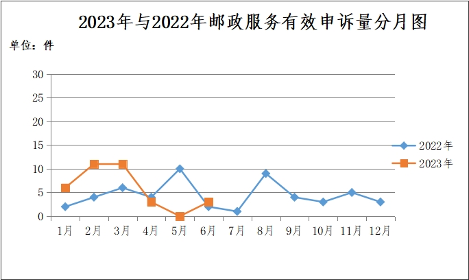 6月,消費者對郵政服務問題有效申訴3件,環(huán)比上升3件,同比上升50%。