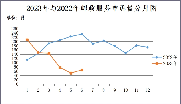 2023年6月消費者對郵政服務問題申訴情況統(tǒng)計表