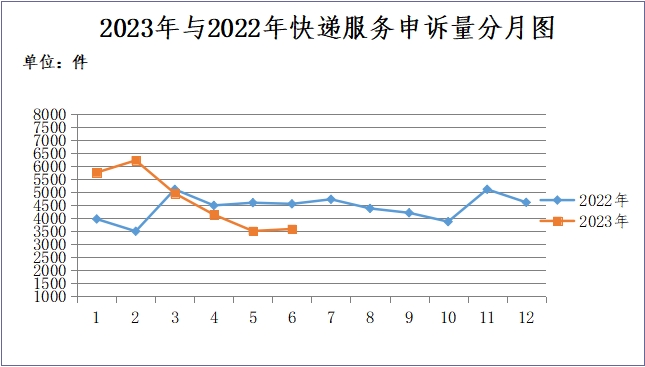 6月,消費者對快遞服務問題申訴3591件,環(huán)比上升2.2%,同比下降21.2%。