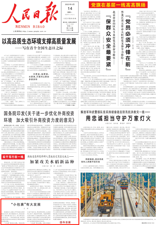 人民日?qǐng)?bào):“小包裹”有大發(fā)展
