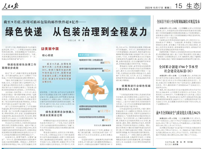 人民日報:綠色快遞 從包裝治理到全程發(fā)力