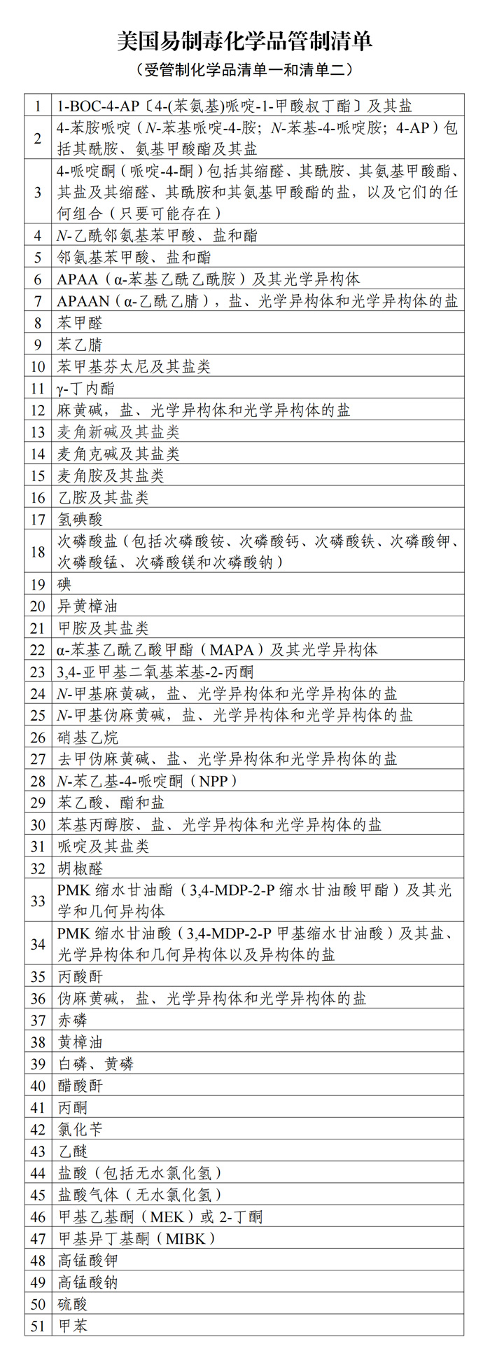 8.涉及美國管制化學品(品種詳見附件)的生產、經營、進出口企業(yè)和個人應謹慎對待來自美國和墨西哥等相關國家的訂單,警惕出口物品被用于制造毒品和可能面臨的“長臂管轄”甚至“釣魚執(zhí)法”的風險。