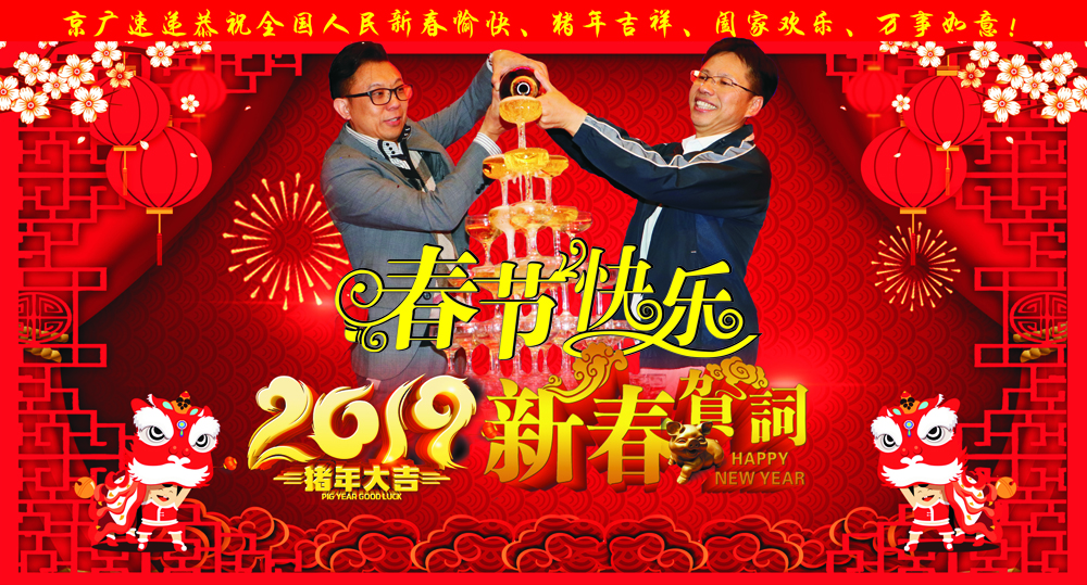 今天是我們中華民族的傳統(tǒng)節(jié)日——2019年春節(jié)。當您在新年第一天打開手機屏幕時,會第一時間收到我們對您滿懷真情的新春祝福!我們以京廣速遞董事會的名義,向公司廣大干部職工,以及你們的家人,向所有關(guān)心和支持京廣速遞發(fā)展的社會各界朋友致以誠摯的問候和最美好的新春祝福!